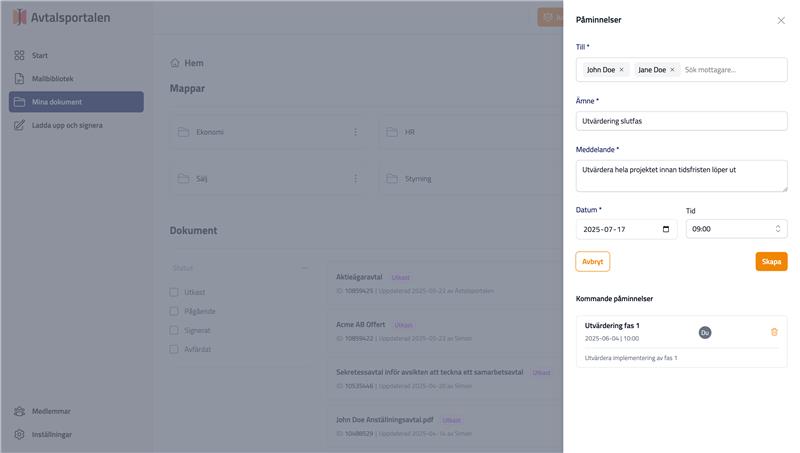 Avtalsportalen är en abonnemangstjänst som baseras på antalet användare. Du kan enkelt öka och minska antalet användare under avtalsperioden.